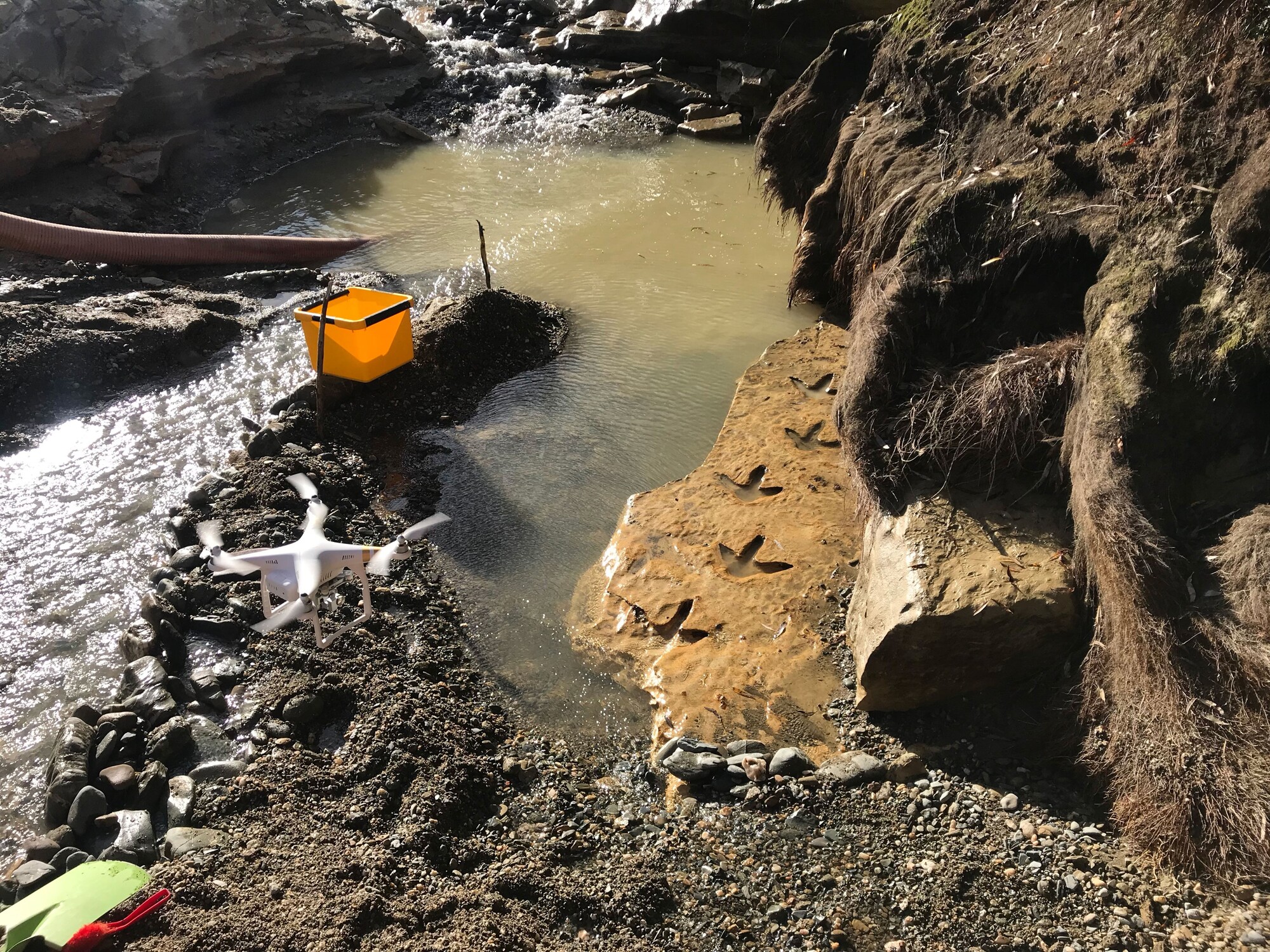 The project involved diverting the river and excavating the footprints from the bottom of the riverbed. Once returned to the Museum, the footprints were slowly dried to ensure the best long-term preservation of the surrounding clay matrix.