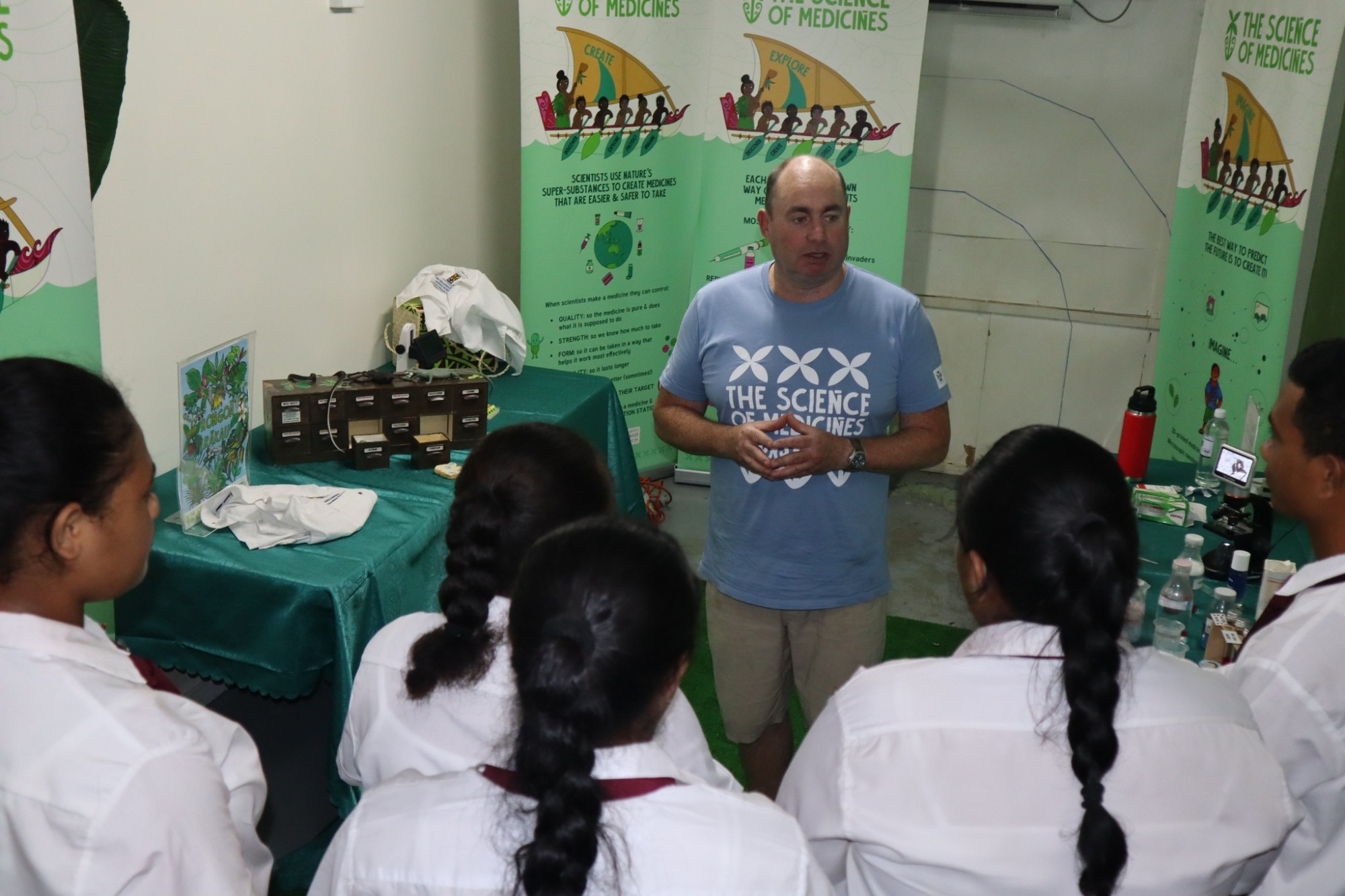 Dr Greg Walker from the University of Otago also came to Samoa to run the Science of Medicines showcase. This showcase helped students learn about routes of administration, emulsions and suspensions, mātauraka Māori medicines, antibiotic resistance, and how vaccines work.